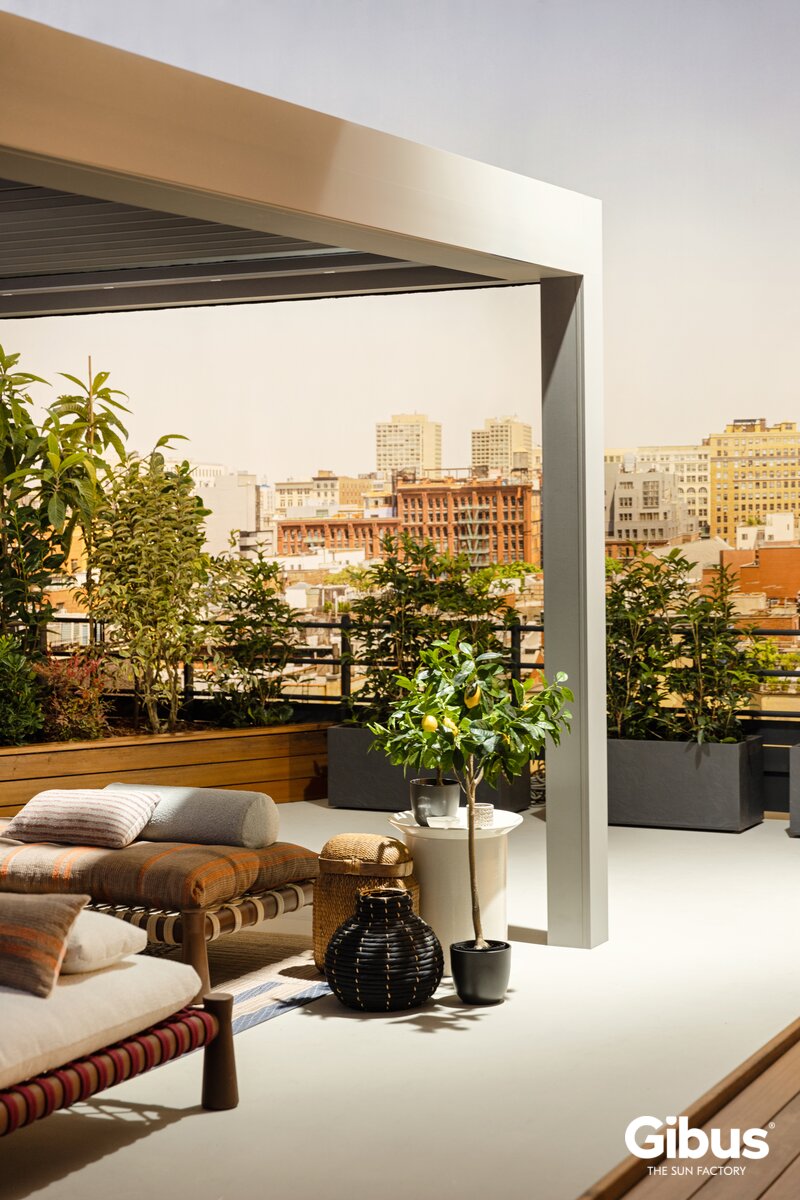 Le pergole bioclimatiche Gibus dialogano silenziosamente con la natura per offrirvi un benessere costante al mutare delle condizioni atmosferiche. Anche le più impercettibili. E con il minimo dispendio energetico. Il segreto è nella copertura a lame, personalizzabili a seconda delle esigenze. Sempre orientabili, per adeguarsi ad ogni evento atmosferico. Impacchettabili, per un maggior comfort. Dotate di pannelli fotovoltaici per rendere la luce del sole una fonte di produzione energetica.