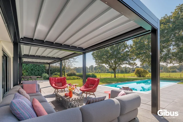 Linee decise, design contemporaneo e materiali di altissima qualità: le pergole a 90° firmate GIBUS trasformano ogni spazio esterno in un ambiente elegante e da vivere tutto l’anno. Perfettamente integrate in qualsiasi contesto — dal giardino privato alla terrazza urbana, fino agli spazi contract — queste pergole offrono protezione totale dal sole e dalle intemperie, garantendo sempre comfort, ombreggiatura e ventilazione ideali. Il telo motorizzato si apre e si chiude con estrema semplicità, mentre la struttura in alluminio robusta e minimale assicura stabilità, durata e manutenzione ridotta al minimo. Ogni dettaglio è pensato per unire tecnologia e design, resistenza e bellezza. Con le PERGOLE A 90° di GIBUS, eleganza e funzionalità si incontrano per creare spazi da vivere ogni giorno, in ogni stagione.