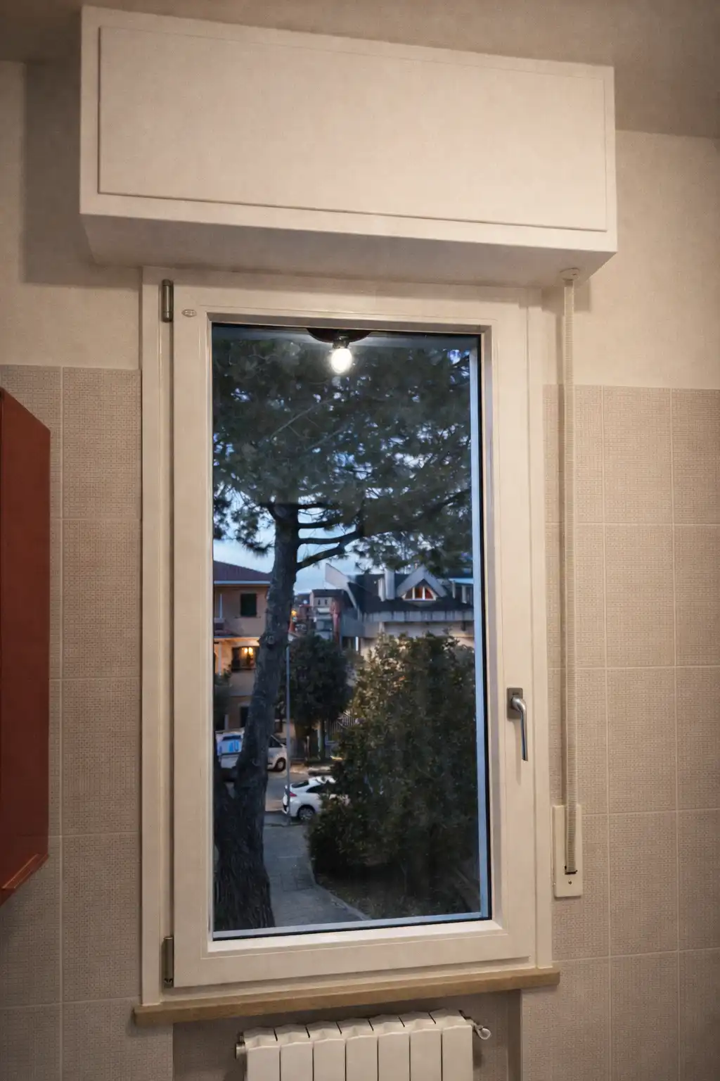 L’intervento è stato organizzato su più giornate, nel pieno rispetto di un’abitazione vissuta quotidianamente: ogni giorno si procedeva con smontaggio, installazione dei nuovi controtelai e posa delle nuove finestre, complete di cassonetti, avvolgibili in PVC e zanzariere. Per gli spazi ridotti, queste ultime sono state installate in luce, garantendo funzionalità senza compromessi.