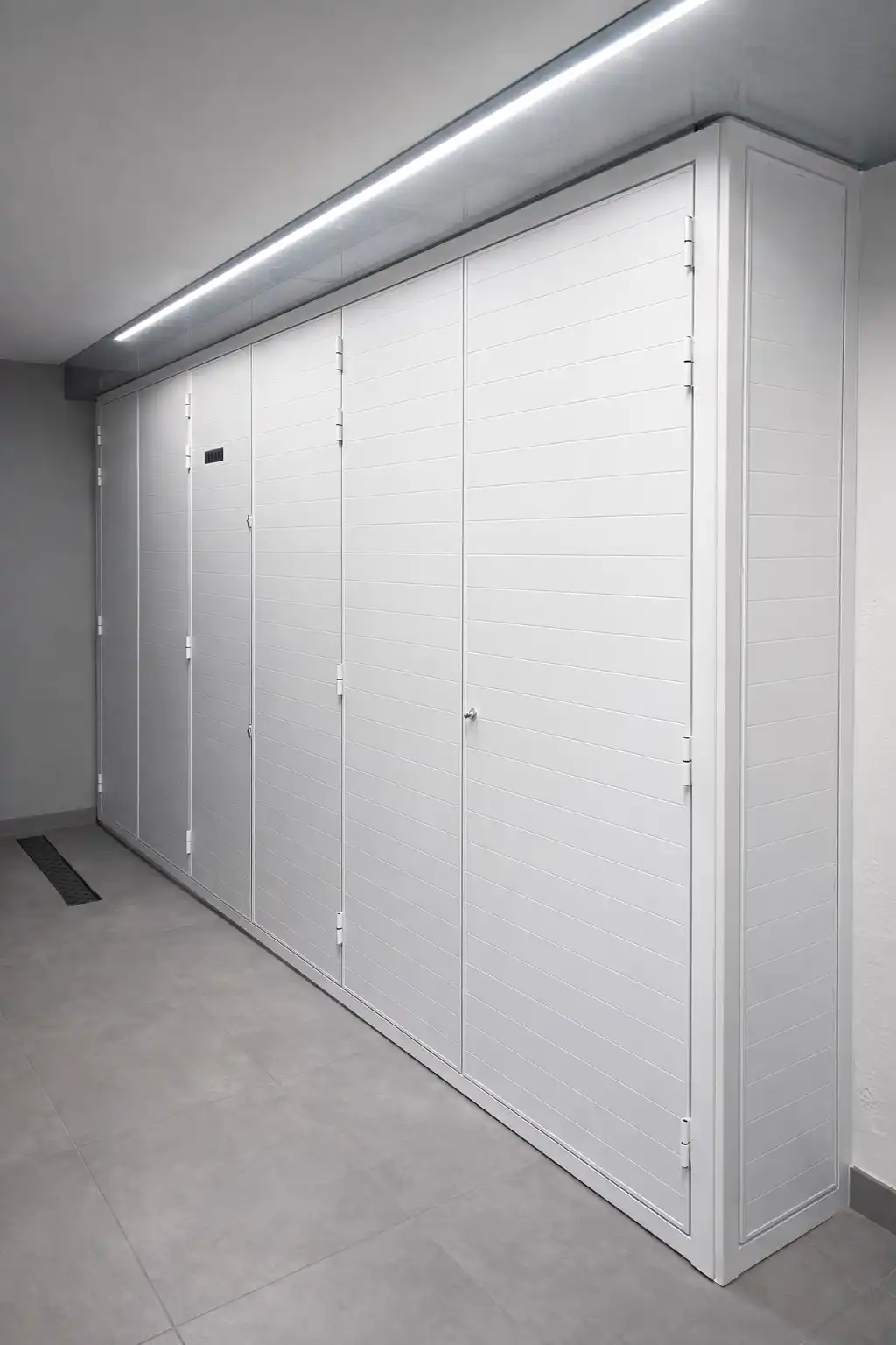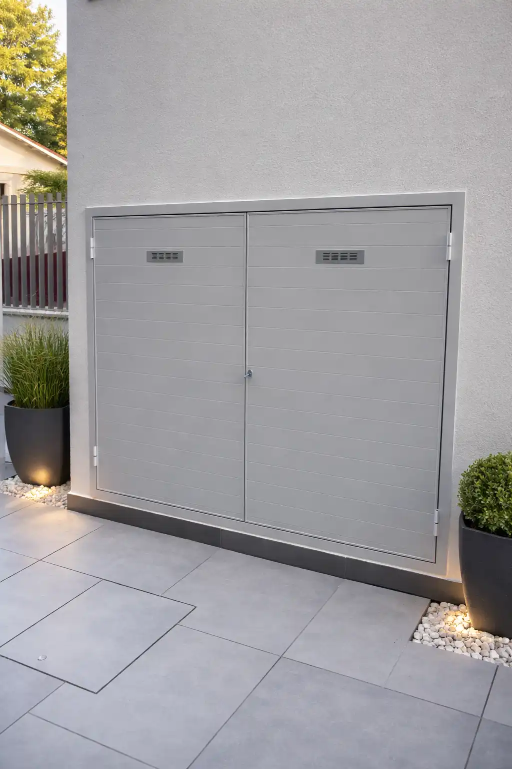 L’intervento nasce dalla richiesta dell’impresa di costruzione di realizzare semplici chiusure tecniche per proteggere i vani destinati ai contatori dell’acqua e dell’energia elettrica. Un’esigenza funzionale, che abbiamo scelto di reinterpretare con uno sguardo progettuale più ampio.