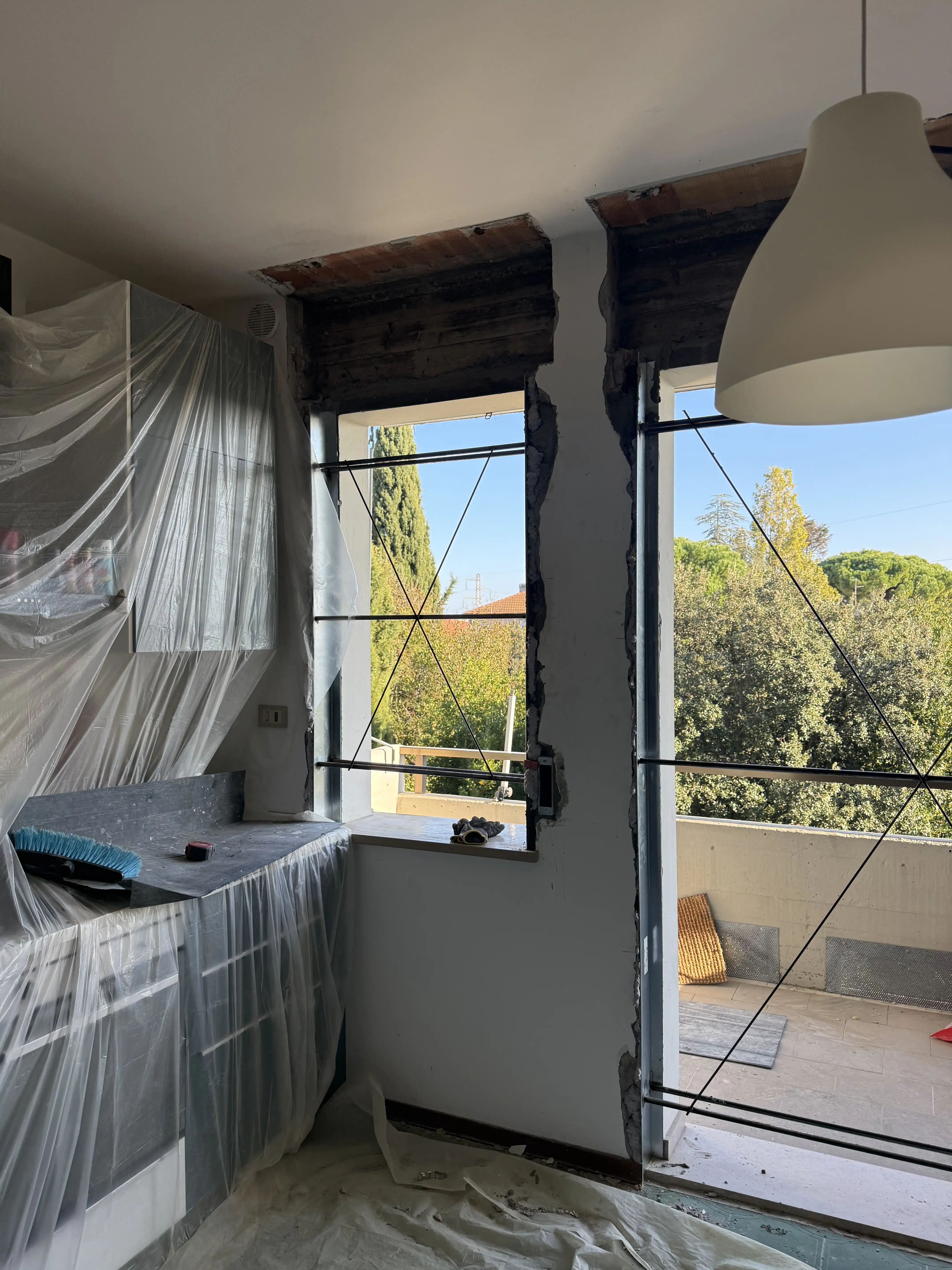 L’intervento è stato organizzato su più giornate, nel pieno rispetto di un’abitazione vissuta quotidianamente: ogni giorno si procedeva con smontaggio, installazione dei nuovi controtelai e posa delle nuove finestre, complete di cassonetti, avvolgibili in PVC e zanzariere. Per gli spazi ridotti, queste ultime sono state installate in luce, garantendo funzionalità senza compromessi.