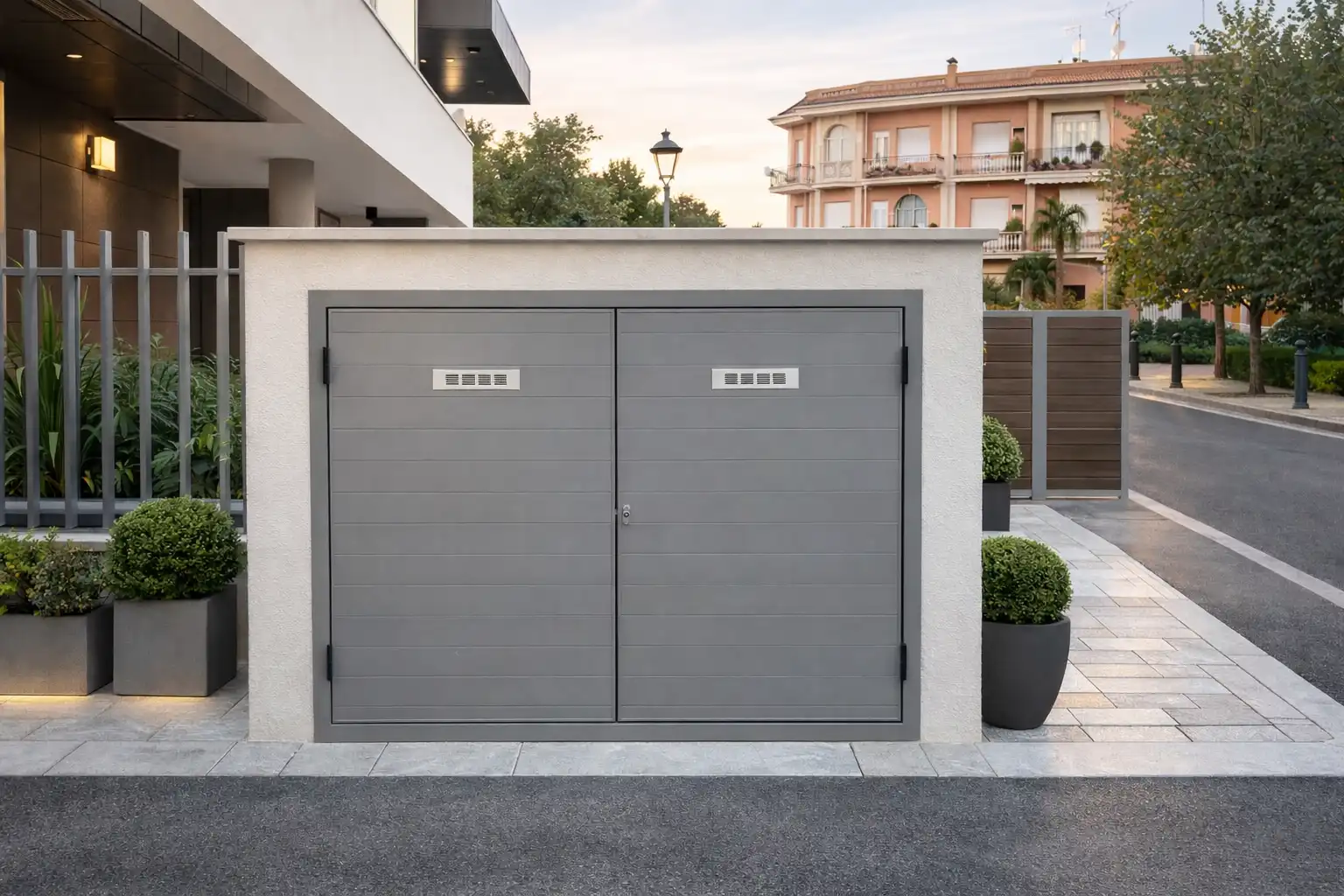 L’intervento nasce dalla richiesta dell’impresa di costruzione di realizzare semplici chiusure tecniche per proteggere i vani destinati ai contatori dell’acqua e dell’energia elettrica. Un’esigenza funzionale, che abbiamo scelto di reinterpretare con uno sguardo progettuale più ampio.